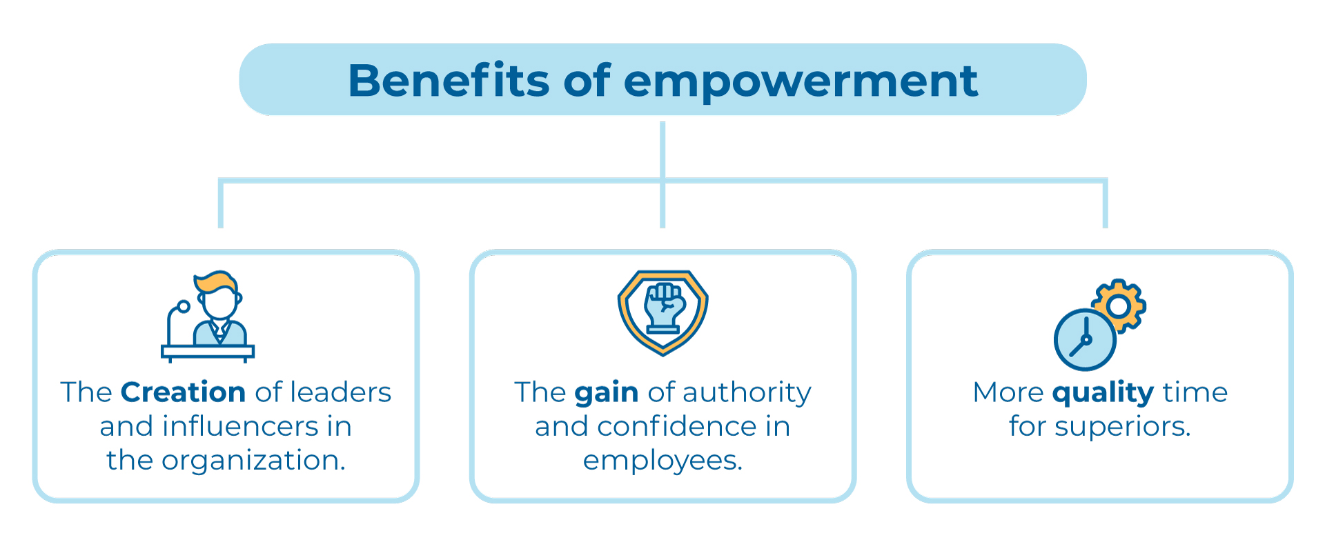 • Efficiency. One of the biggest benefits of empowering talent within your company is that it becomes more efficient. When the employees have the power to make decisions and take ownership of projects, supervisors can delegate tasks easily, having more time available to complete other tasks that require more senior involvement.